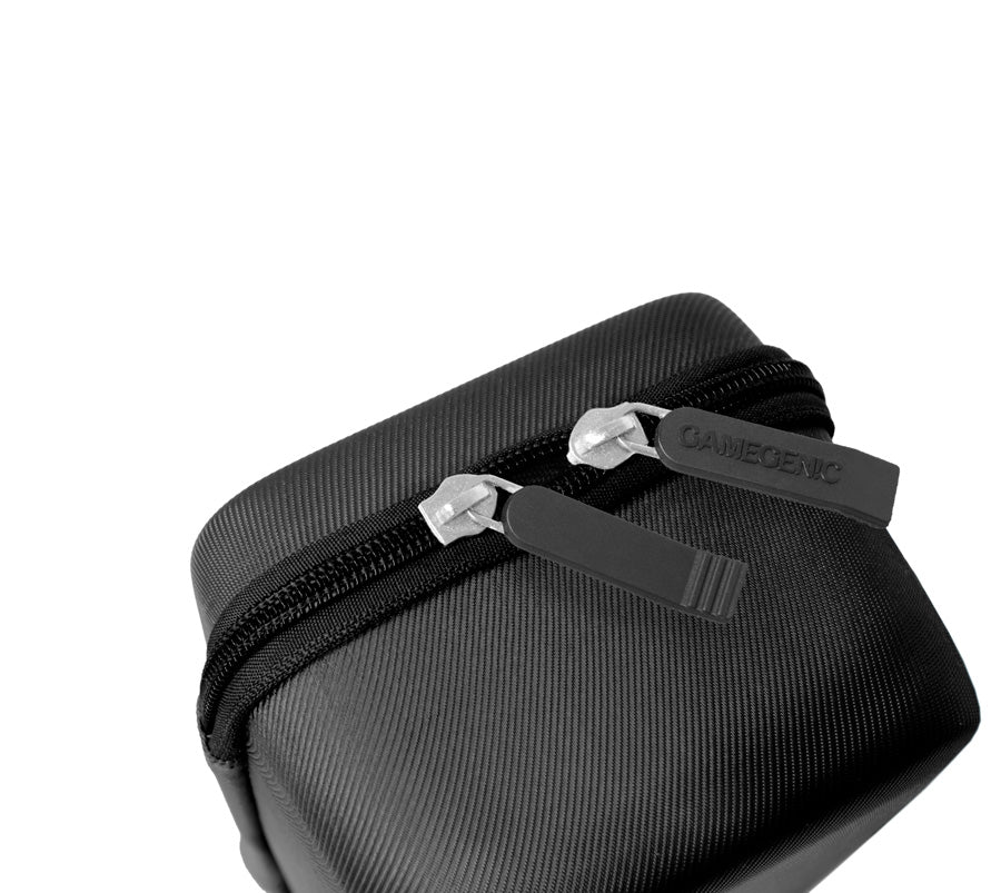 Your Game. Your Shell. Your Journey. The Game Shell is a portable case, perfectly sized for a wide variety of usages. It fits up to 250 double-sleeved cards, tokens, dice or even complete small games. The outside material comes in durable and resistant nylon with a premium structure. It boasts a reinforced handle and two zippers, hidden and protected by the outer material. On the inside, the Game Shell provides an accessories compartment and 2 adjustable dividers. This enables a completely free setup, adjustable to your needs and preferences. FEATURES Holds up to 250 double-sleeved cards* Portable, sturdy card case with reinforced handle Includes adjustable shoulder strap Enclosed zipper to provide additional safety and protection Includes 2 strong removable dividers to create your individual compartments Contains accessories compartment with small-meshed net Durable nylon surface,reinforced bottom and top EVA Foam at edges ensures a safe inner compartment without any curved corners Also perfect to carry complete card games or small board games * Optimized for Gamegenic Sleeves. Sleeves from other brands may affect capacity/compatibility SPECIFICATIONS Product size 200 x 93 x 115 mm Material Nylon Packaging type Polybag + cardboard label