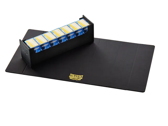 The Magic Carpet is perfect for storing and transporting your prized cards in an easy and stylish way. The exterior can be separated from the storage tray to be used as a playmat, so that you always have one handy when transporting your decks. The Magic Carpet comfortably holds up to: 7 Dragon Shield 100 sleeve boxes or 6 Dragon Shield Deck Shells or 500 double sleeved cards or more than 1001 unsleeved cards! So whether you have a cube, a set of decks or a special part of your collection you want organized, the Magic Carpet is the perfect storage solution. Comes with a tough 'Dragon Hide' exterior, known from the nest boxes, and a smooth inner lining, as well as very strong magnets to keep your cards safe during transport.