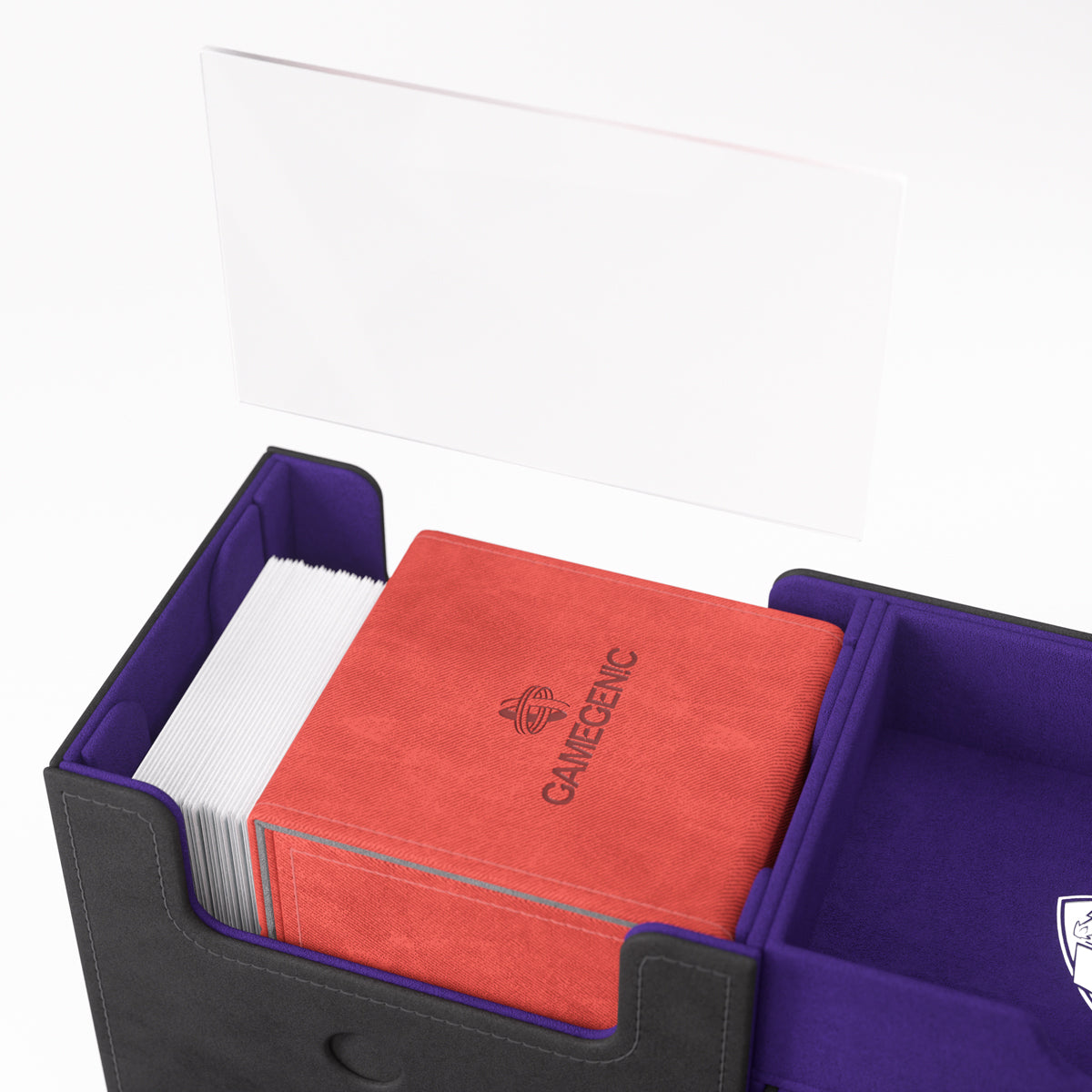 - Top section for additional accessories, cards, tokens, dice, Life Counter, Toploaders, or Slide Card Cases