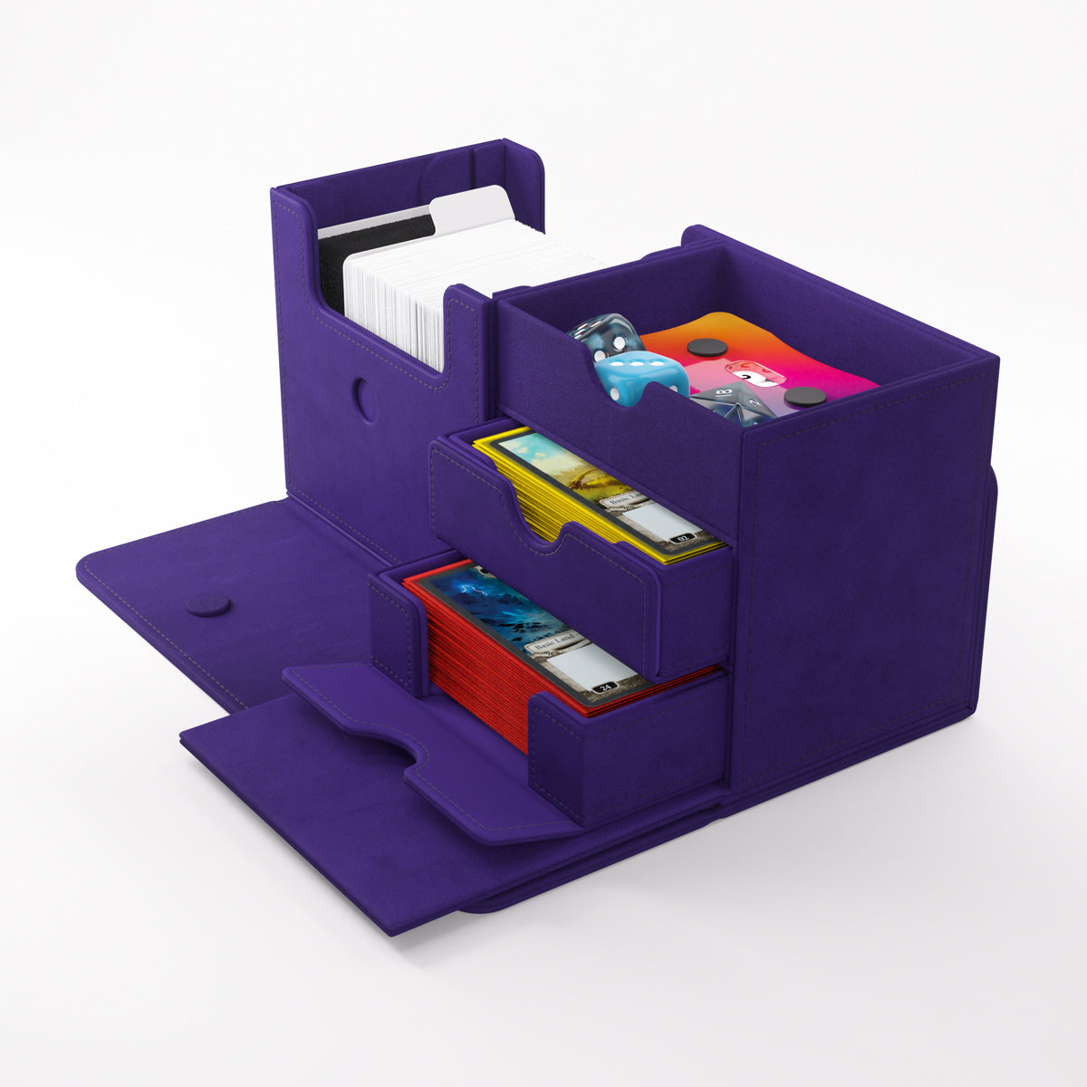 - Top section for additional accessories, cards, tokens, dice, Life Counter, Toploaders, or Slide Card Cases
